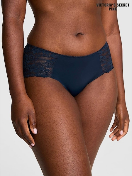 Victoria's Secret PINK Noir Navy Blue Hipster No Show Lace Trim Knickers