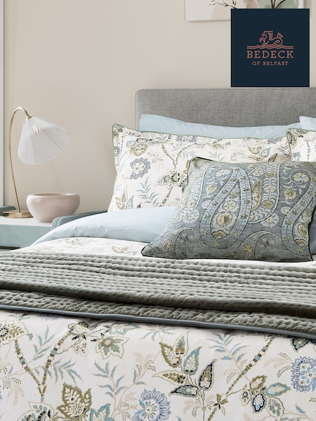 Bedeck of Belfast Soft Teal and Green Emira 200 Thread Count Cotton Pillowcases Pair