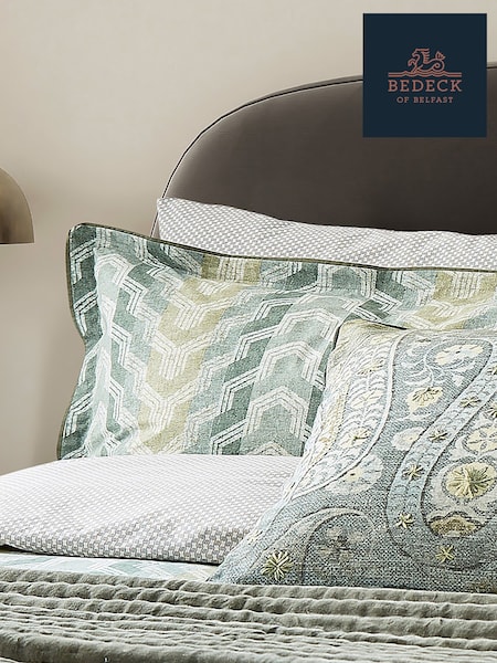 Bedeck of Belfast Green Reya 200 Thread Count Cotton Pillowcase Pair