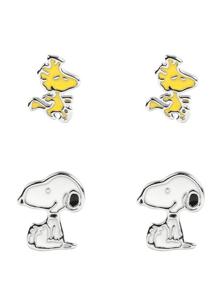Peers Hardy Snoopy & Woodstock Stud Silver Tone Earrings Set