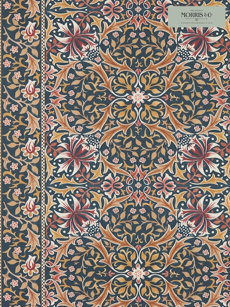 Morris & Co UmberMineral Blue Persian Tulip Unfinished Works 10M Wallpaper