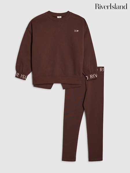 River Island Brown Spiltback Logo Sweatshirt & Legging Set
