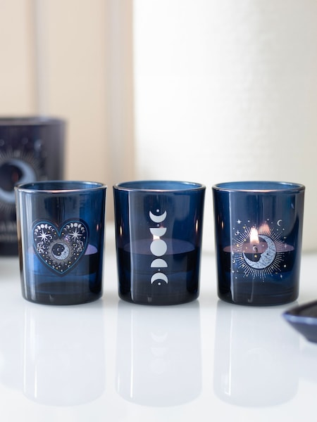 Something Different Set of 3 Blue Blue Moon Votive Candle Holders