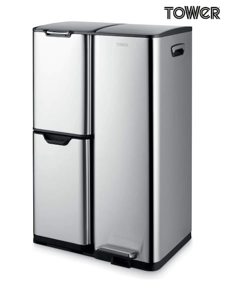 Tower Stainless Steel 60L 3 Compartments Pedal Bin