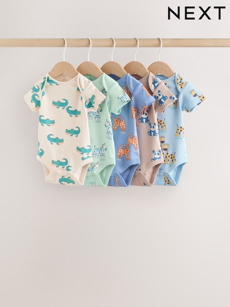 Blue/Green Short Sleeve Baby Bodysuits 5 Pack