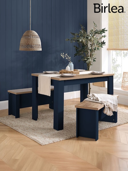Birlea Navy Blue Highgate Dining Table & Bench Set