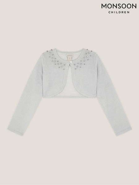 Lipsy Silver Grey Boucle Textured Fringe Trim Crew Neck Knitted Cardigan