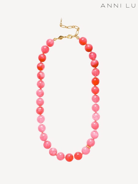 Oliver Bonas Pink Sylvie Hammered Enamel Heart Collar Necklace
