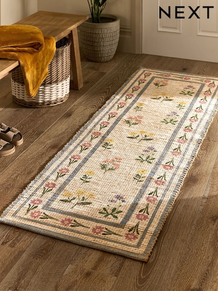Natural Floral Border Jute Runner
