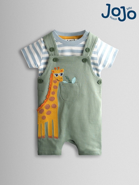 JoJo Maman Bébé Brown Safari 2-Piece Appliqué Dungaree & Top Set