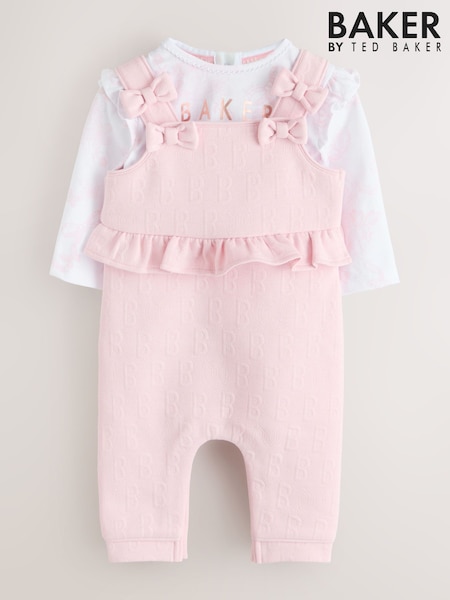 Baker by Ted Baker Pink Jacquard Bow Dungarees & T-Shirt Set