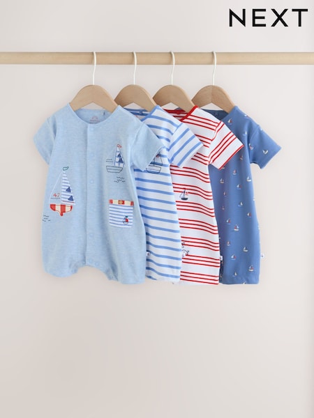 Blue Nautical Jersey Baby Rompers 4 Pack