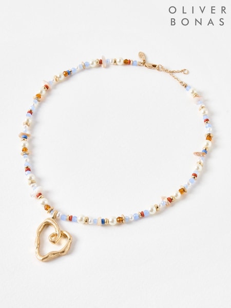 Oliver Bonas Blue Jackson Heart Pendant Beaded Necklace