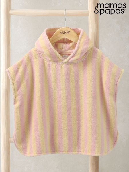 Mamas & Papas Pink Flower Petal Striped Towelling 100% Cotton Poncho
