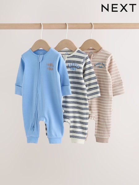 Blue Stripe Two Way Zip Baby Sleepsuits 3 Pack (0mths-3yrs)