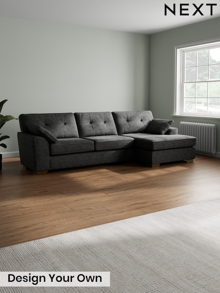 Tweedy Blend Easy Clean/Dark Grey Stamford Buttoned Back