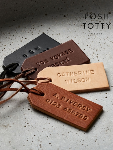 Personalised Handstamped Leather Luggage Tag by Posh Totty Designs