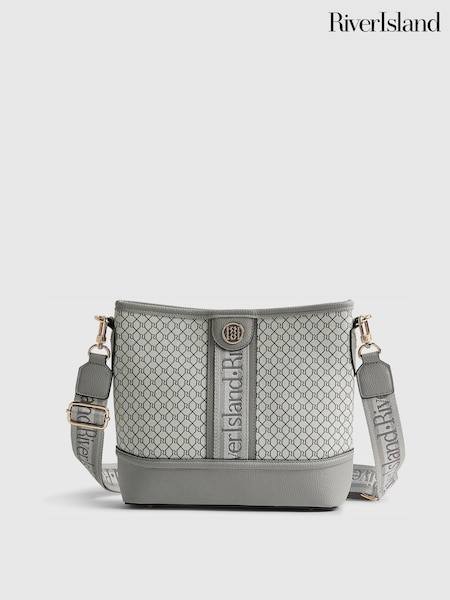 River Island Grey Monogram Webbing Bucket Bag