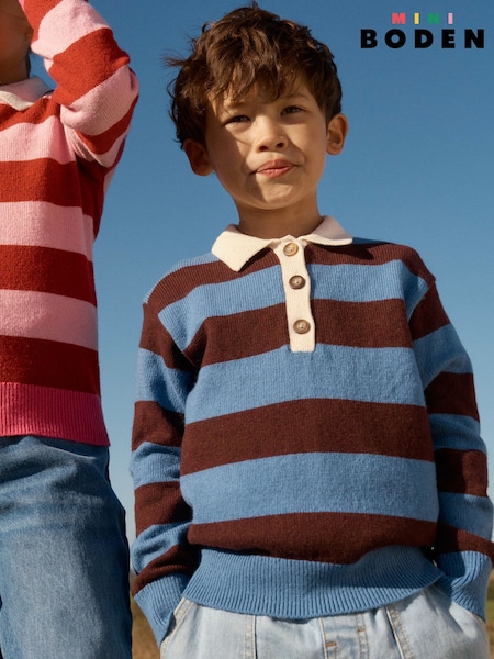 Boden Blue Knitted Rugby Jumper