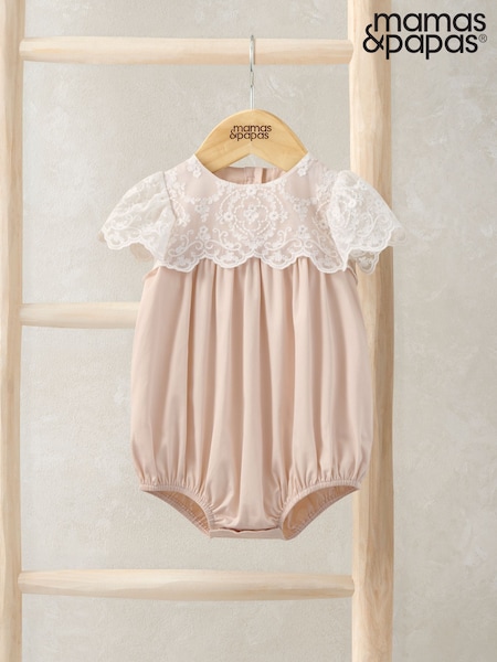 Mamas & Papas Pink Lace Bodice Romper