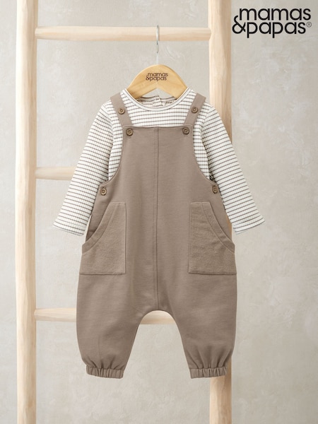 Mamas & Papas Brown Dungarees & Stripe Bodysuit Set