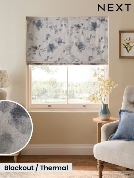 Grey Ready Made Blackout Thermal Floral Print Roman Blind