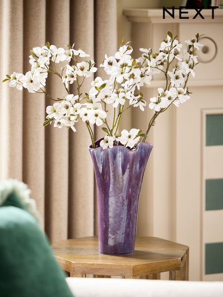 Purple Ruffled Reactive Glaze Ceramic Vase