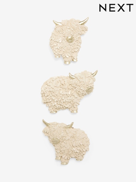 Set of 3 Cream Hamish The Highland Cow Plaques Wall Art