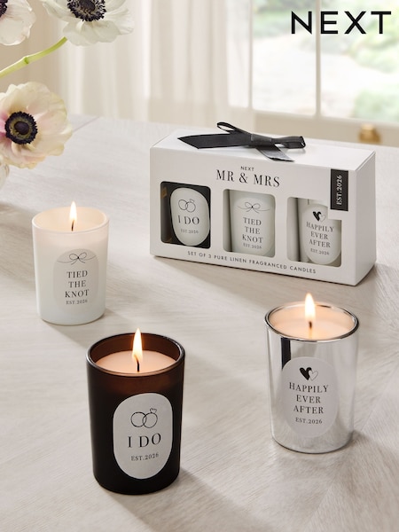 Monochrome Est in 2026 Mr and Mrs Set of 3 Wedding Candle