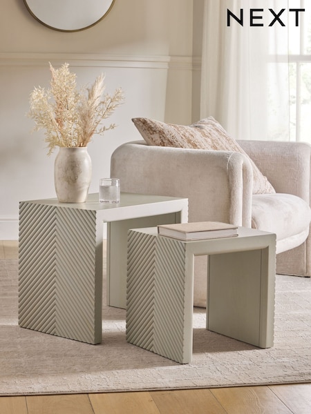 Grey Textured Ribbed Set of 2 Nest of Tables