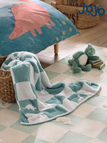 JoJo Maman Bébé Teal Blue Dino Checkerboard Boucle Blanket