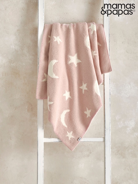 Mamas & Papas Pink Moon and Star Chenille Blanket