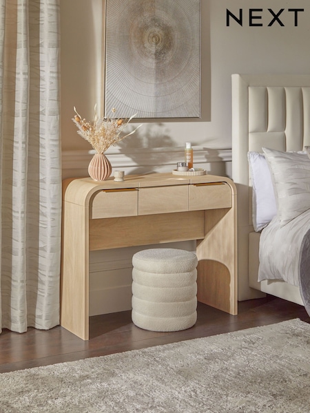 Mid Natural Mia Oak Effect Light Up 2 Drawer Console Dressing Table