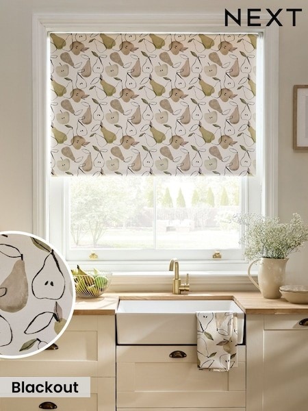 Natural Ready Made Blackout Kitchen Roller Blind Apples & Pears