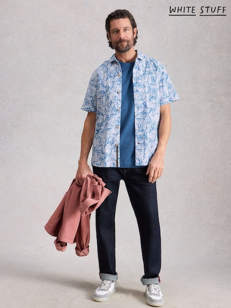 White Stuff Blue Tile Stitch Ss Shirt