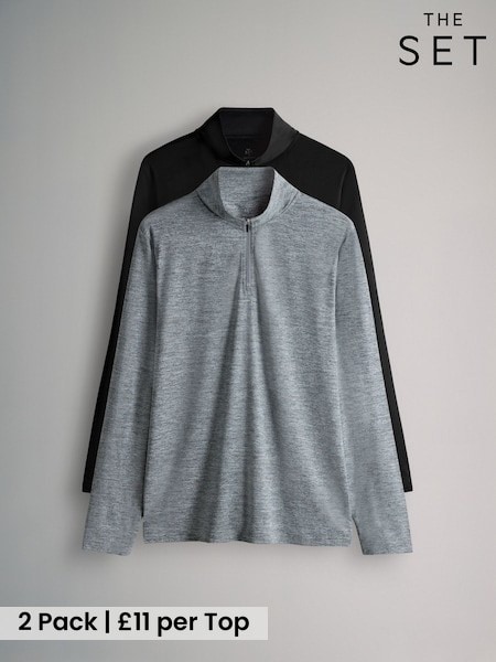 The Set 2 Pack Activewear Zip Neck Tops Black/Grey