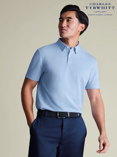 Charles Tyrwhitt Blue Short Sleeve Performance Long Sleeve Jersey Polo Shirt