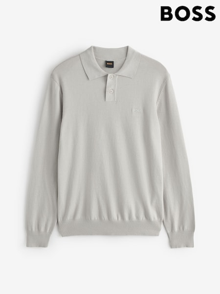 BOSS Grey Regular Fit Bono Long Sleeve Knitted Polo Shirt