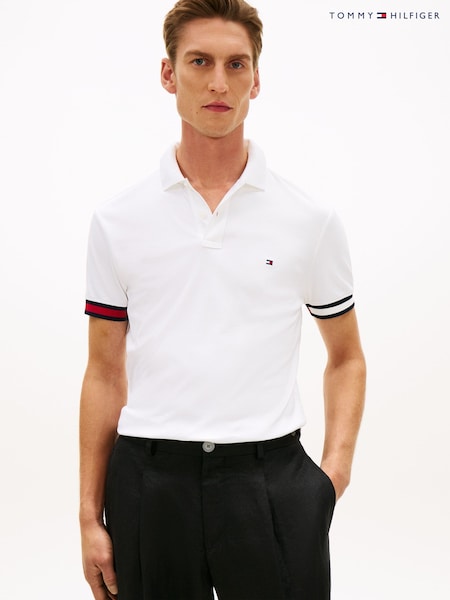 Tommy Hilfiger White Slim Fit Interlock Knit Tipped Polo Shirt