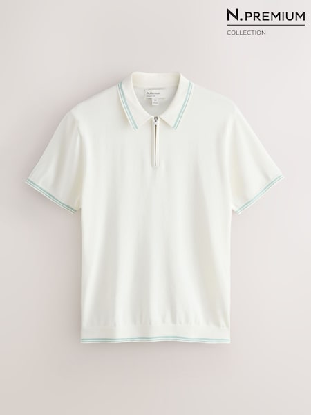 White Slim Fit N. Premium Tipped Short Sleeve Quarter Zip Knit Polo Shirt