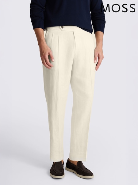 MOSS Cream Linen Pleated Trousers