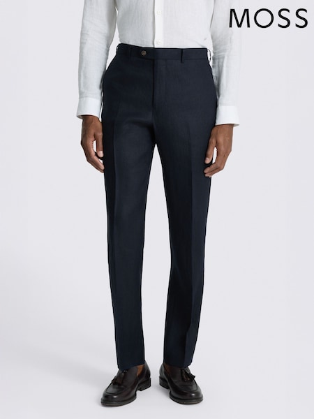 MOSS Blue Regular Fit Twill Linen Suit Trousers