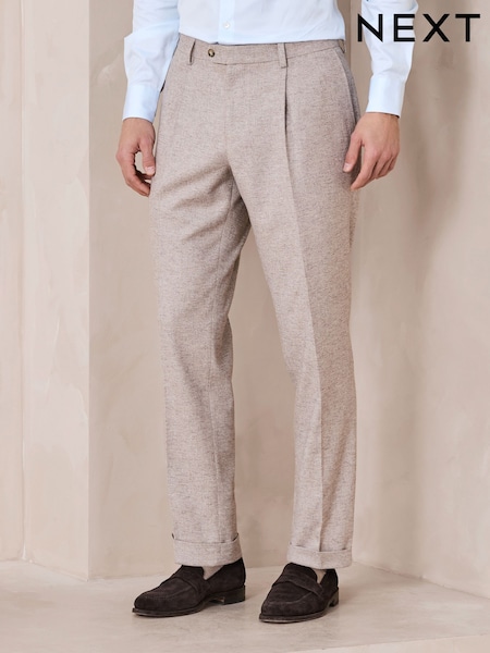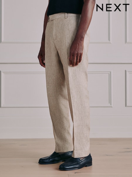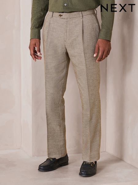 MOSS Brown Linen Pleated Trousers