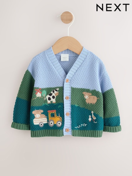 Blue/Green Baby Embroidered Cardigan (0mths-2yrs)