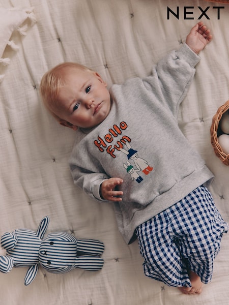 Blue Check Hello Fun Sweatshirt and Trousers Baby Set (0mths-2yrs)