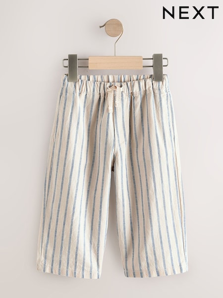 Blue/Ecru Wide Fit Linen Blend Pull on Trousers (3mths-7yrs)