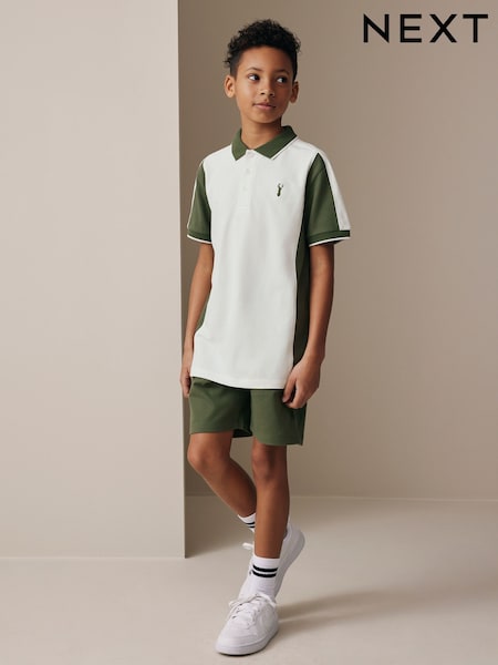 Green/Ecru Colourblock Short Sleeve Polo Shirt and Shorts Set (3-16yrs)