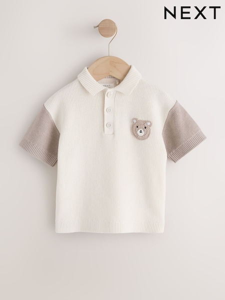 Neutral Bear Character Button Neck Knitted Polo Shirt (3mths-7yrs)