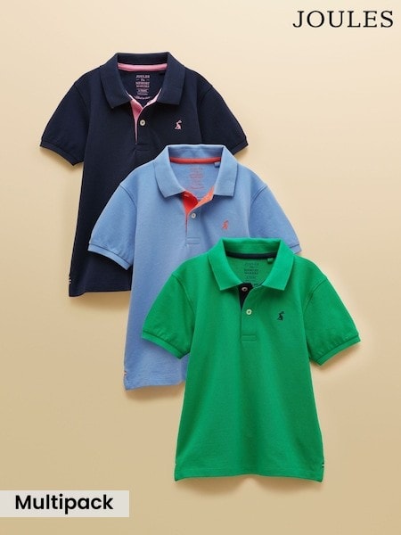Joules Boys' Woody Blue/Green/Navy Cotton Polo Shirts 3 Pack