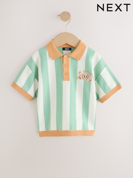Green/Orange Croissant Character Button Neck Knitted Polo Shirt (3mths-7yrs)